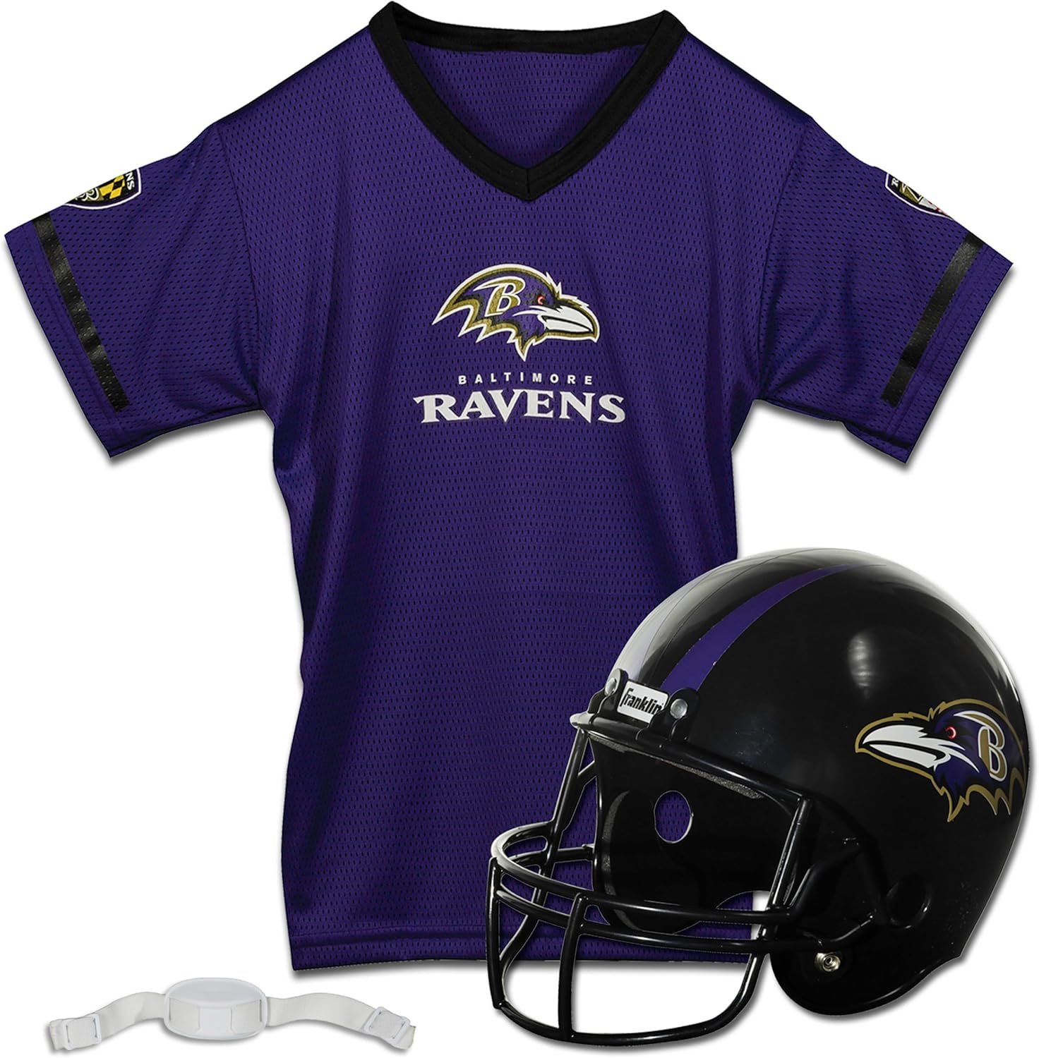 The Franklin Sports NFL Kids Football Helmet and Jersey Set includes a breathable polyester jersey and a soft, molded helmet with authentic team colors and logos—perfect for dress-up, playtime, or showing team spirit on game day.